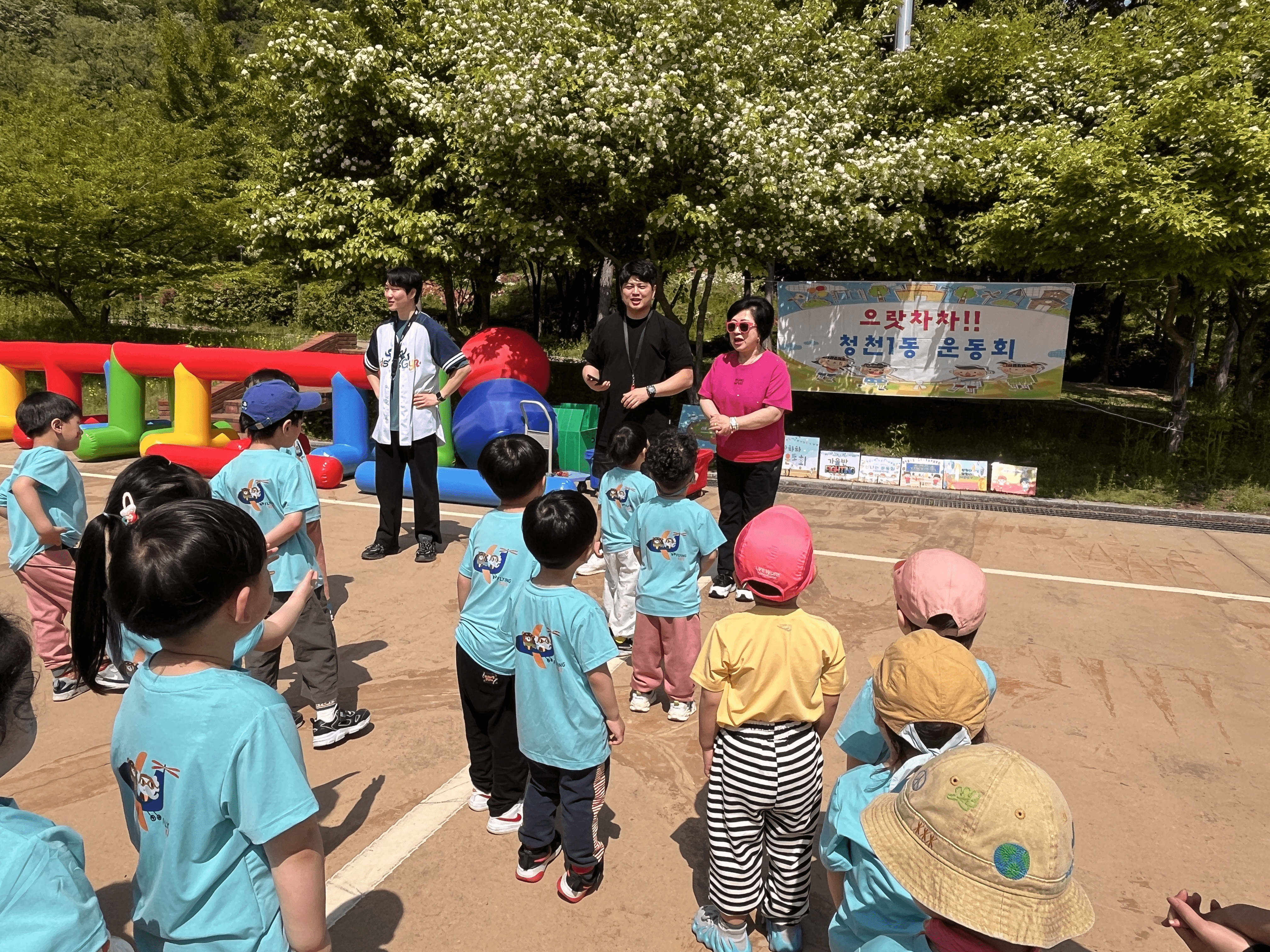 열린어린이집 어린이날 행사 'HAPPY CHILDREN'S DAY'가 총 2회에 걸쳐 청천1동어린이집 마당에서 진행되었다. 지난 5월 2일(목)에 진행한 1차 행사는 아침 등원길에 부모님과 함께 어린이날에 대해 알아보았다. 이어서 아이들은 좋아하는 색의 물감을 골라 어린이집 벽면에 그려진 아동권리나무를 꾸며주었다. 모두 얼굴에 행복한 웃음이 떠나질 않았으며 애써주신 선생님들께 감사의 마음을 표현했다. 오후에는 솜사탕을 만들어 달콤한 사랑을 나누어 주고 가족들과 함께 포토존에서 예쁜 추억을 남겼다. 5월 4일(토)에 진행된 2차 행사는 원적산 공원에서 열렸다. 원장님의 개회사를 시작으로 기다리던 미니운동회가 막을 열었다. 과자 따먹기, 큰 공 굴리기, 장애물 달리기 등 아이들의 몸도 마음도 건강해지는 여러 가지 활동을 순서대로 진행하였다. 있는 힘껏 달리기하며 해맑게 웃는 아이들과 옆에서 응원하는 친구들의 목소리가 원적산 공원에 울려 퍼지는 시간이었다. 어린이날을 맞이하여 행복하고 건강한 어린이로 자라기를 바라며 아이들에게 오색찬란한 날을 주고싶은 원장님과 교사들의 마음을 담은 소중한 시간이었다.