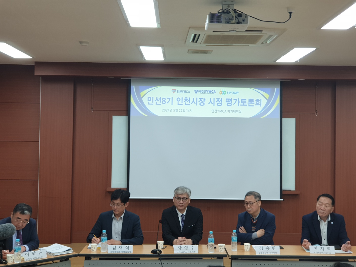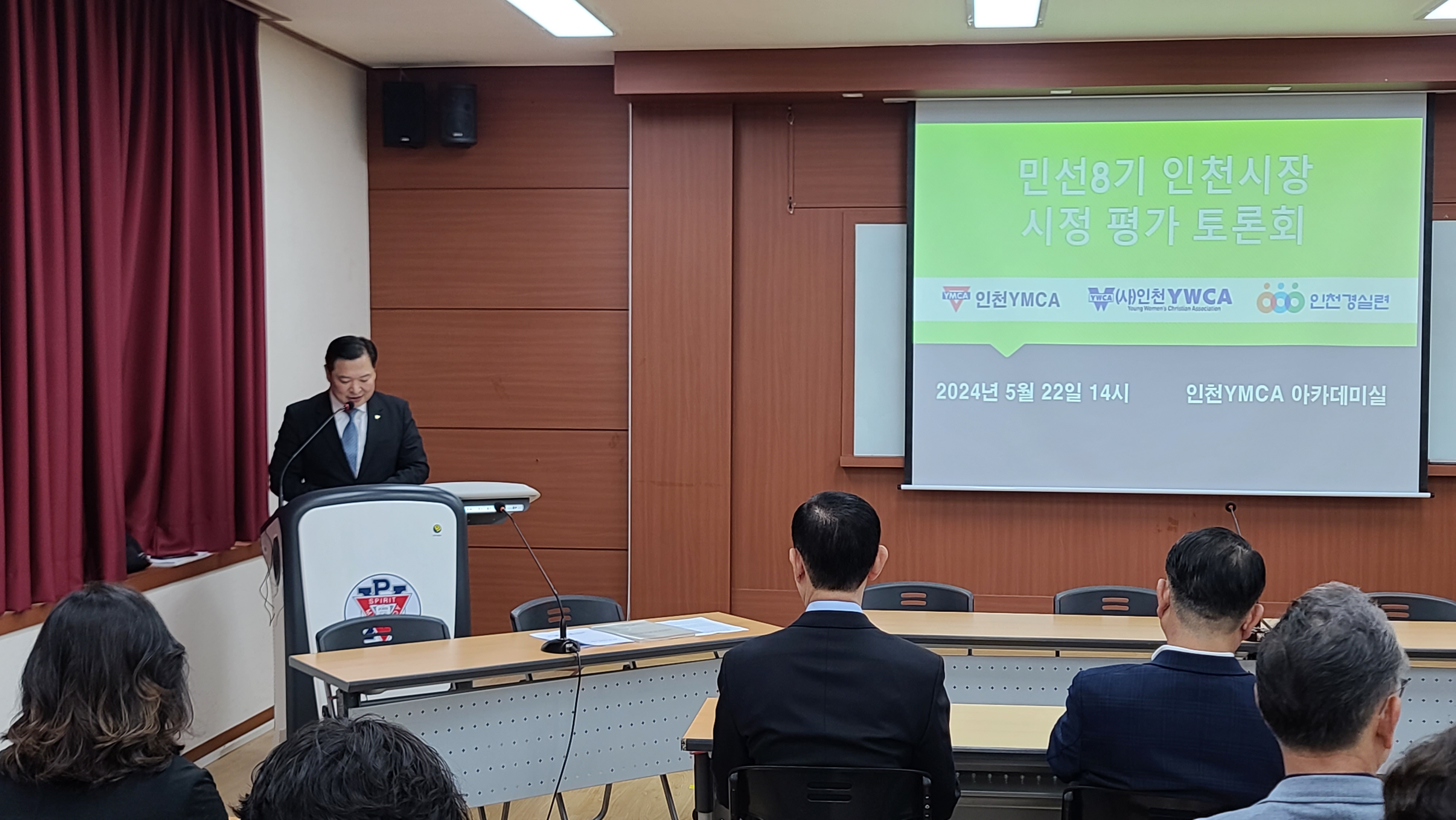 1. 인천주권찾기 조직위원회(공동대표 조성일‧권미영‧김연옥)는 5월 22일(수) 오후 2시, 인천YMCA 1층 아카데미실에서 <민선 8기 인천시장 시정평가 토론회>를 개최했습니다.