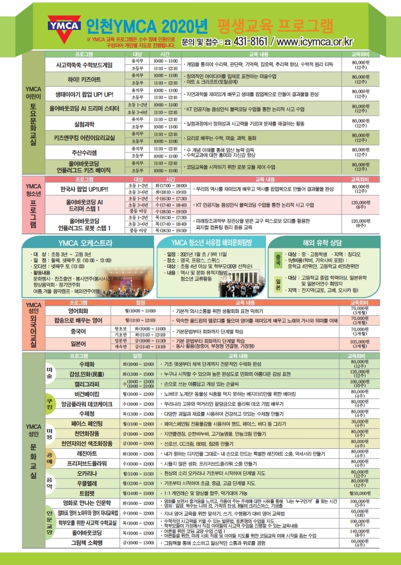 6. 문의 및 접수 : YMCA 본관 ☎ 431-8161