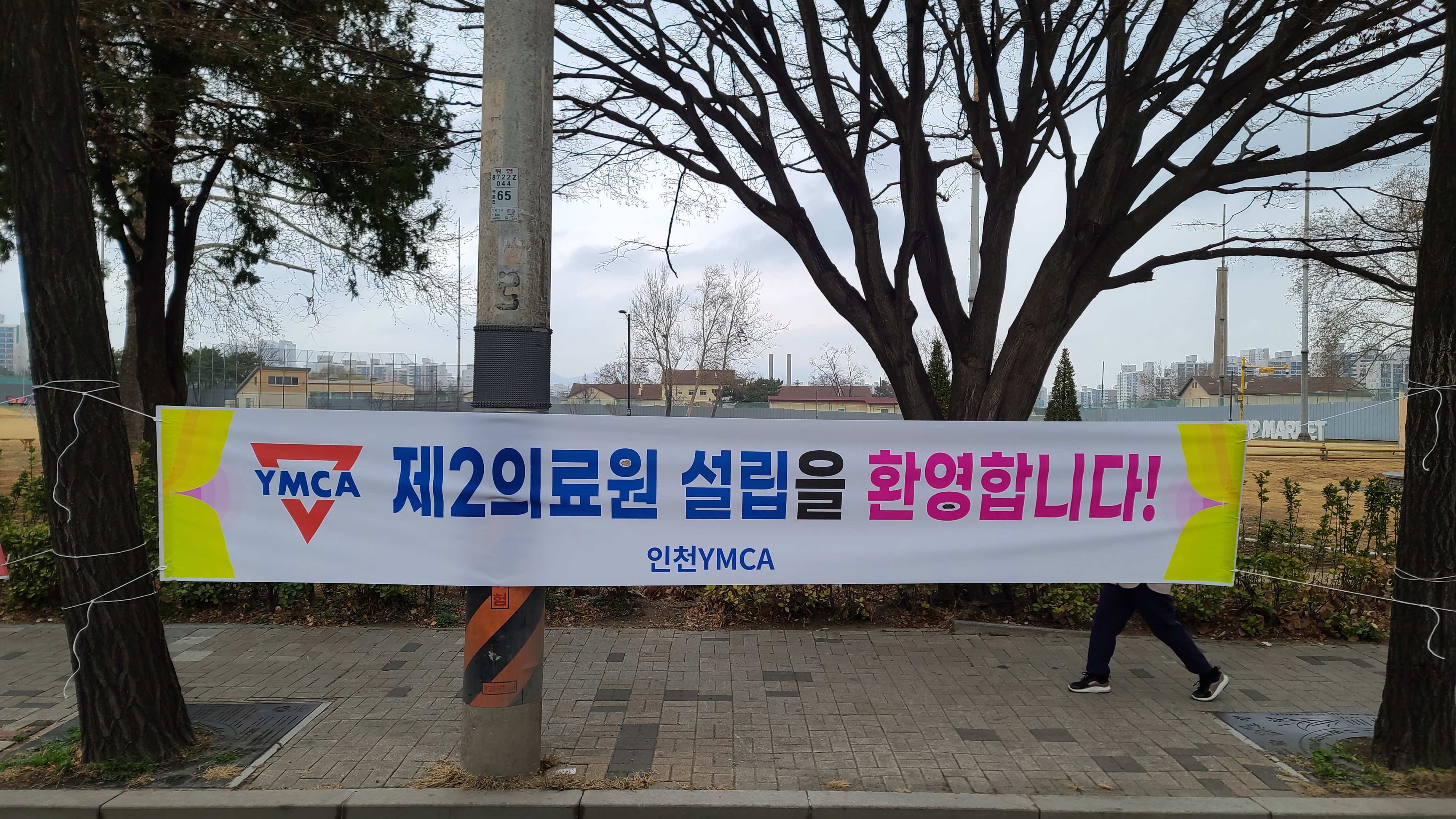 인천YMCA는 재외동포청 인천 유치, 제2의료원 설립, 인천대 공공의대 설립과 관련하여 이를 찬성하며 지지하는 차원에서 현수막을 게첩하였다. 재외동포청 현수막은 시청 앞 길에, 제2의료원 설립 현수막은 캠프마켓 앞에, 인천대 공공의대 설립 현수막은 인천대학교 내에 게첩하였다. |