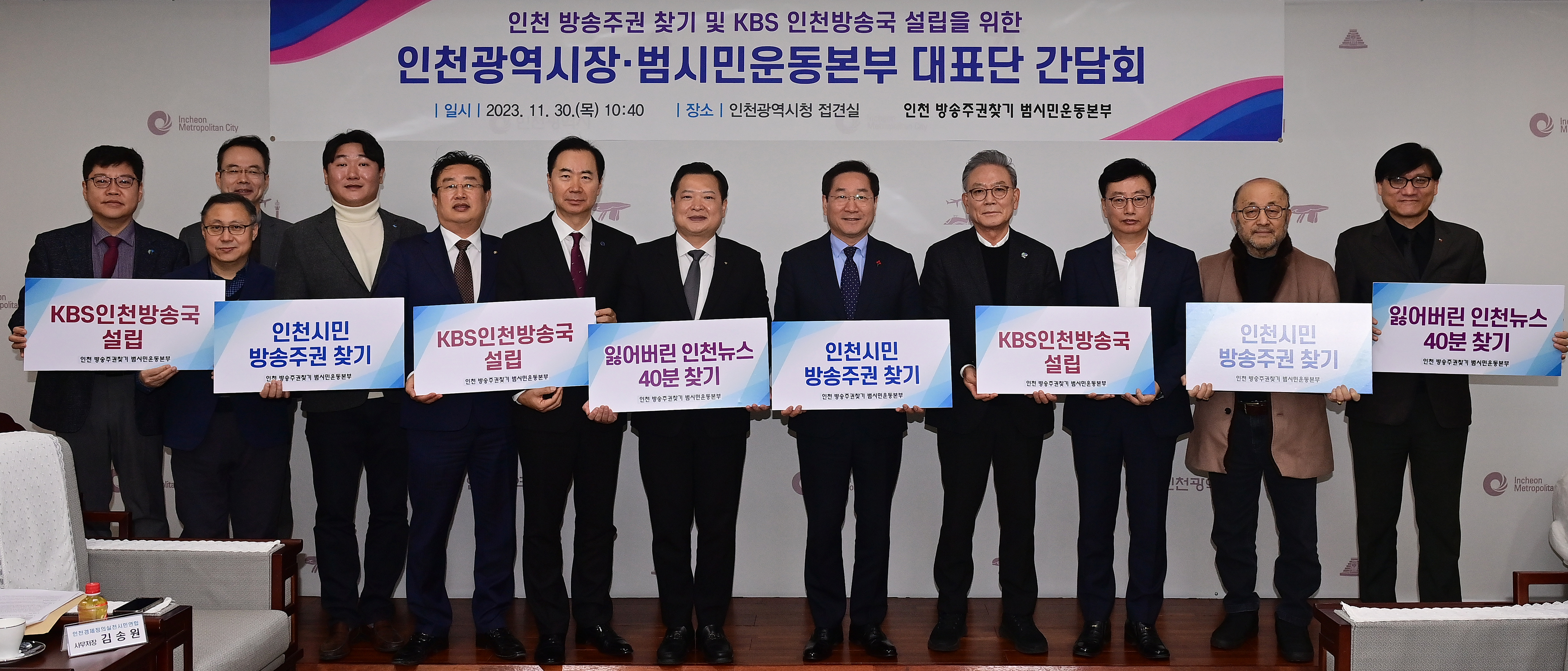 범시민운동본부 상임대표를 맡은 조성일 인천YMCA 회장 등 공동대표 7명과 집행위원 4명 등 총 11명이 참석한 대표단은 유정복 시장에서 건의문을 전달했다. 건의문에는 인천시의 시민운동 지원, 여야민정이 ‘인천 방송 주권 찾기 및 KBS 인천방송국 설립’ 캠페인에 협력, 'KBS 뉴스7' 지역화 확대 시행과 KBS 인천방송국 설립 문제를 대한민국 시·도지사협의회 및 중앙·지방협력회의 안건으로 상정해달라는 내용이 담겼다.
