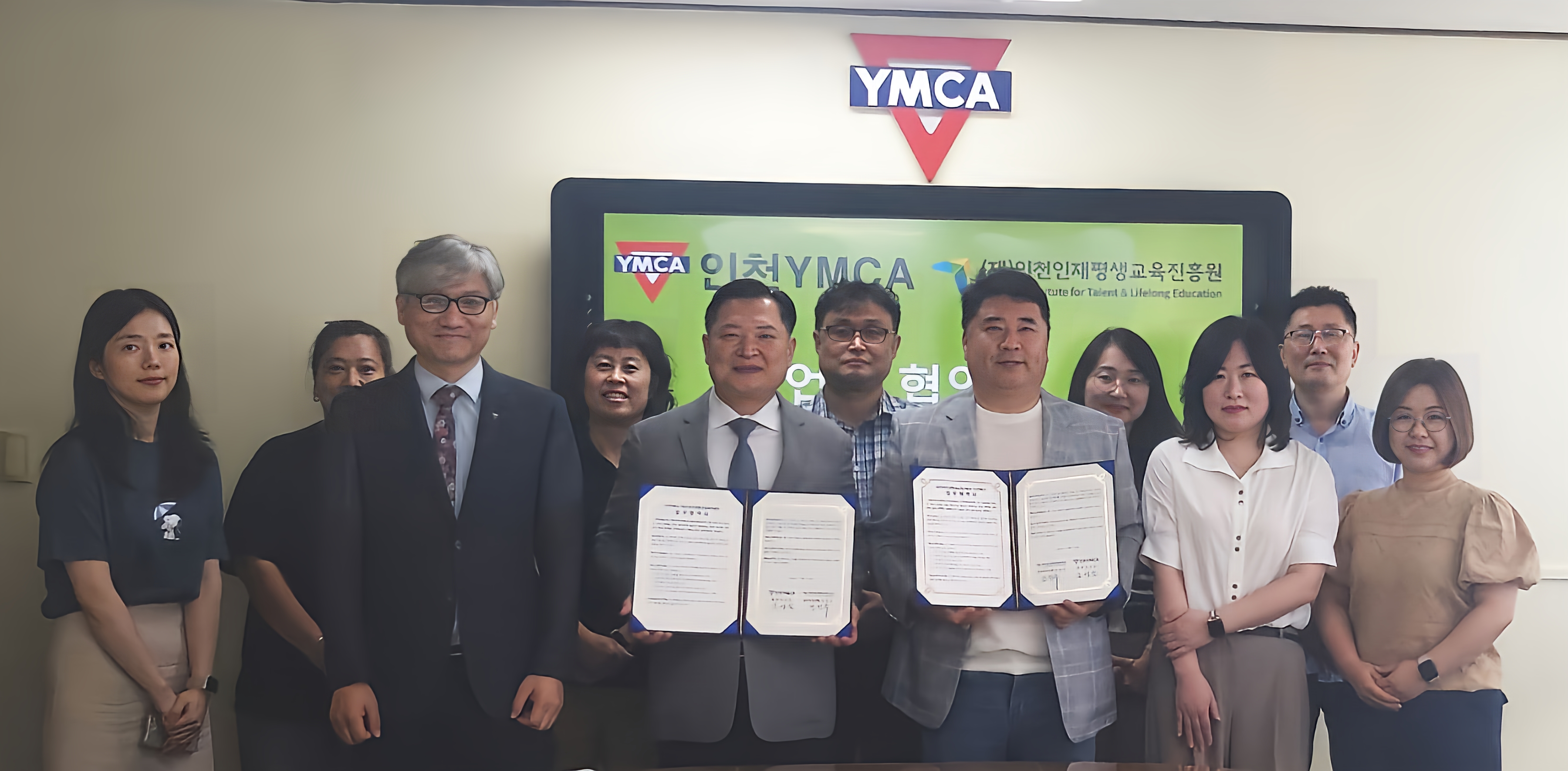 인천YMCA(회장 조성일)와 인천인재평생교육진흥원(원장직무대행 조민수)은 7월 15일, 인천YMCA 회의실에서 상호 업무협약식을 진행하였다.양 기관은 인천 시민을 위한 평생교육 발전과 평생학습 문화 확산을 위하여 상호 교류, 인적 물적 인프라 공유, 상호 프로그램 홍보 지원 등을 협약하였다. 이번 협약식에는 인천YMCA 조성일 회장과 인천인재평생교육진흥원 조민수 원장직무대행을 비롯하여 양 기관의 직원들이 참석하여 상호 업무 협조를 위한 협약에 뜻을 함께 하였다.