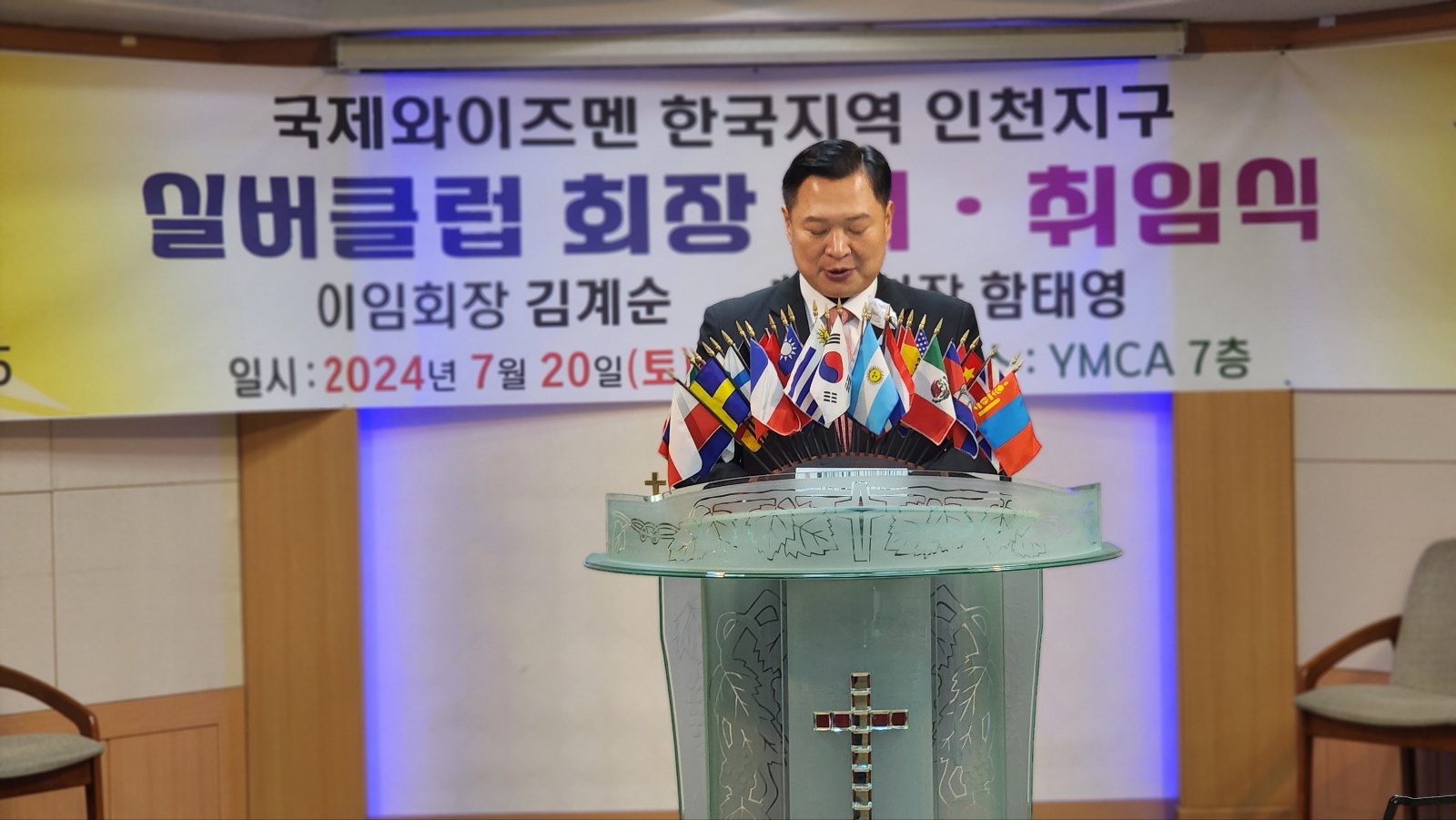 7월 20일(토) 11시 인천YMCA 강당에서 국제와이즈멘 한국인천지구 실버클럽의 회장 이취임식이 진행되었다. 실버클럽에서는 김계순 회장이 이임하고, 새로 함태영 회장이 취임하였다. 인천YMCA 조성일 회장은 축사를 통해 실버클럽의 활발한 활동과 YMCA와의 긴밀한 협력을 바란다고 말하였다.