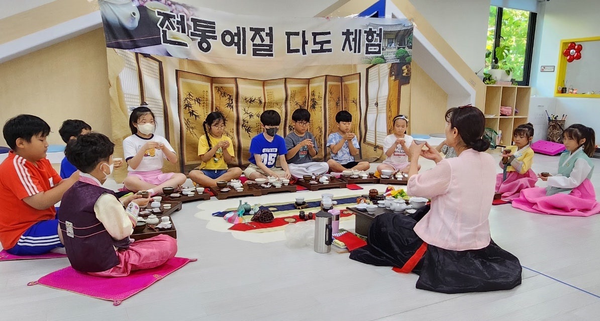 추석을 맞이하여 센터 내에서 다양한 행사들을 진행 했는데 이번에는 아동들에게 전통예절과 우리나라 다도 문화에 대해 체험 할 수 있도록 다도 프로그램을 진행하였습니다. 올바른 공수법, 인사예절교육, 큰절 배우기 등 아동들이 실생활 속에서도 기본이 되는 예절 수업을 직접 몸으로 체험 해보는 시간을 통해서 타인을 존중하고 배려하는 예절방법에 대해 좀 더 익히게 되었습니다. 또 다도수업을 통해 차를 마시면서 정서적 안정감과 마음을 차분하게 다스릴 수 있어 너무 유익한 시간이 되었다고 아동들과 학부모님들 모두 다 만족했던 프로그램이었습니다. |