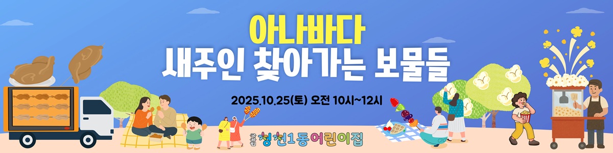 | 국공립 청천1동어린이집 "새주인 찾아가는 보물들"아나바다바자회 | 운영자 | 2025-10-29 | |||