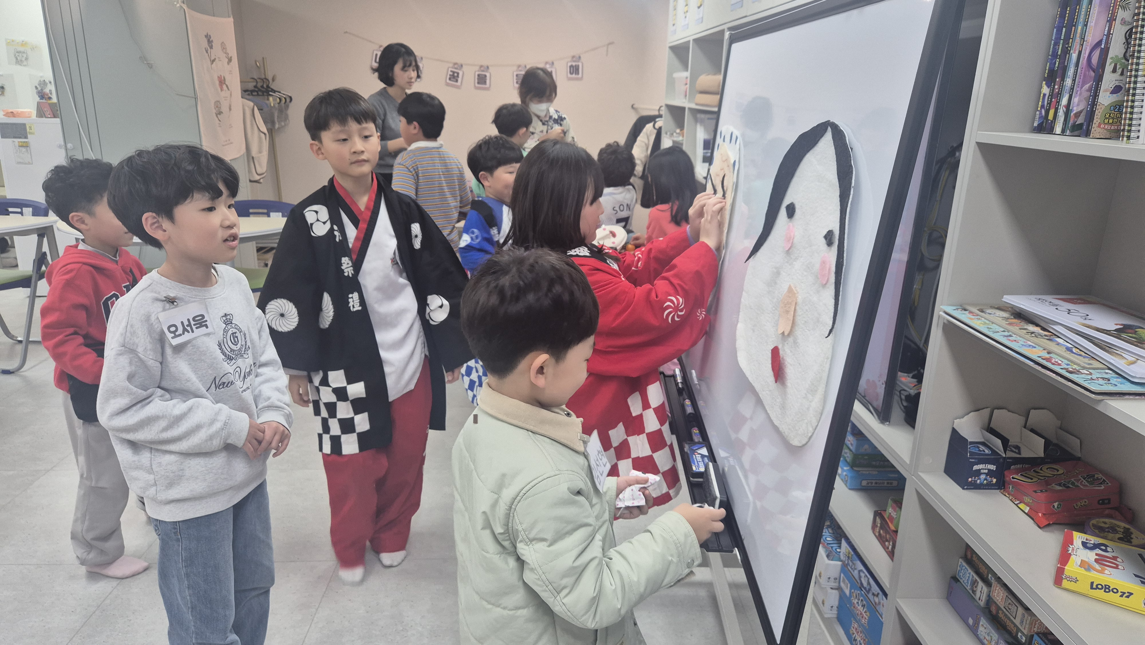 남동구 다함께돌봄센터 7호점은 2025년 11월 14일(금), 남동구 가족센터의 지원으로 교실로 찾아가는 다문화 이해교육을 실시하였다. 이날 총 18명의 아동이 참여했으며, 일본인 강사로부터 일본의 명절과 음식에 대한 설명을 들은 후 일본의 전통놀이를 알아보고 일본 팽이 만들기 체험을 진행하였다. 이어 일본의 전통놀이인 하네츠케, 겐다마, 팽이놀이를 직접 체험하며 즐거운 시간을 보냈다.
