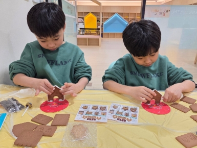 송도자이더스타 다함께돌봄센터에서는 2025년 12월 22일에 크리스마스를 맞이하여 아이들과 함께 '달콤한 과자집' 만들기를 하였답니다.