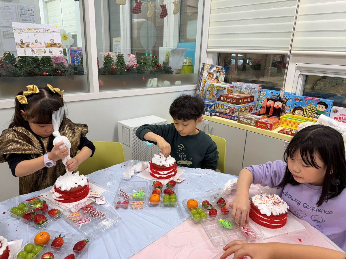 서구 다함께돌봄센터 12호점에서는 12월 23일 크리스마스를 맞이하여 레드벨벳 케이크 만들기프로그램을 진행하였다