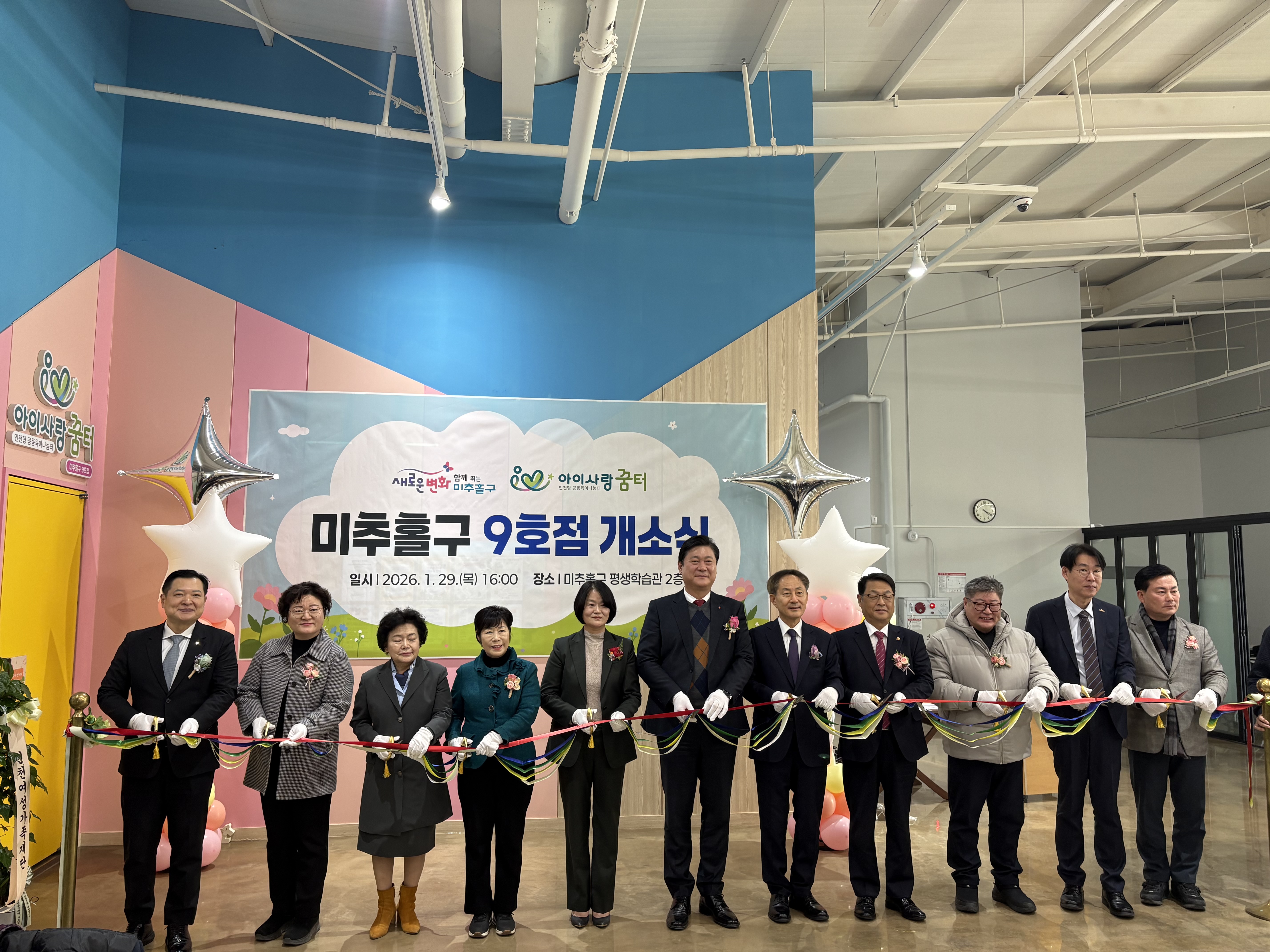 인천 YMCA청소년 재단이 인천시 미추홀구청으로부터 수탁받아 운영하게 된 미추홀구 아이사랑꿈터9호점 개소식이 1월 29일 오후4시에 진행되었다. 이 시설은 2025년 11월부터 2028년 11월까지 3년간 운영하게 된다. 아이사랑꿈터는 인천형공동육아나눔터로 영유아에게는 놀이공간과 프로그램을 제공하고, 부모교육과 자조모임을 통해 서로 소통하여 양육의 즐거움을 누릴 수 있도록 도움을 준다. 아이사랑꿈터를 통해 양육친화환경을 구축하고 지역주민 간의 소통을 통해 더 살기 좋은 인천시와 미추홀구가 되는 것에 목적을 둔다. 개소식에는 인천YMCA의 권오용 이사님, 조성일 회장님과 이영훈 미추홀구청장을 비롯해 시의원, 구의원, 구청 관계자 그리고 YMCA 산하 수탁기관 센터장, 꿈터장 등 60여 명이 참석하였다.