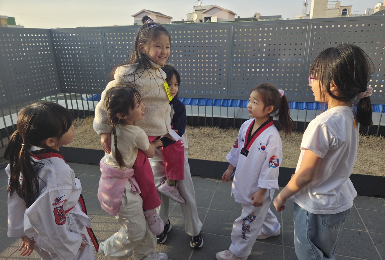 요즘 아이들의 이야기는 주로 우리 선생님 착해!! 우리 선생님은 엄청 무서워!! 센터에 와서 학교 자기반 담임선생님 이야기가 한창이다. 그래서 3월과 4월은 학습보다는 아이들이 몸을 주로 쓸 수 있는 활동을 많이 한다. 감사하게도 행정복지센터에서 많은 배려를 해주셔서 아이들이 편안하게 놀 수 있다. 얘들아!! 센터는 너희들의 놀이터란다. 오늘도 신나게 날아보자~~ "여자친구들은 기마전"