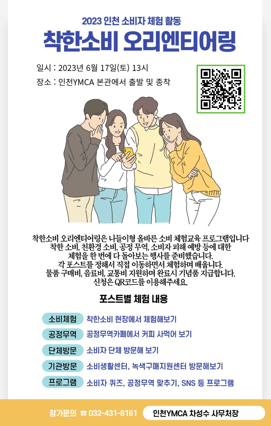 ㅇ 일시 : 2023년 6월 17일(토) 13시~17시 ㅇ 장소 : 인천YMCA 출발 및 종착, 소비생활센터, 공정무역 카페, 소비자단체 등