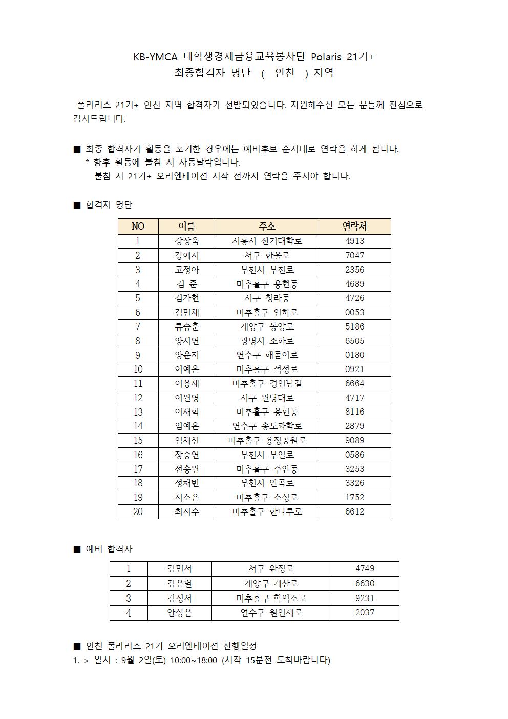 대학생경제금융교육봉사단(POLARIS) 21기+ 최종합격자 발표